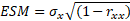 L’Erreur Standard de Mesure (ESM) plus souvent appelé SEM (notation anglo-saxonne) est un indicateur de l'importance de la variabilité de l'erreur de mesure (le carré de l'erreur standard de mesure est la variance d'erreur observée pour un test dans une population). L'ESM s'exprime en fonction du coefficient de fidélité (rappel : le coefficient de fidélité représente la part de variance correspondant à des différences vraies, non aléatoires, entre les personnes). Soit sx l'écart-type des scores dans la population et rxx le coefficient de fidélité, on calcule le ESM à partir de la formule suivante :