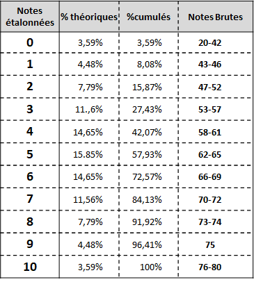 ▪Les notes étalonnées se distribuent normalement (c'est donc une normalisation de la distribution par transformation non linéaire des notes brutes).